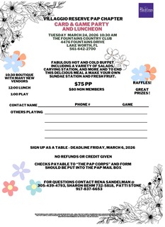 To signup and pay via credit card for any of the great offerings and events advertised in the below flyers, just click on the flyer and you will automatically be taken to the Villaggio Reserve page on the national Pap Corps website.