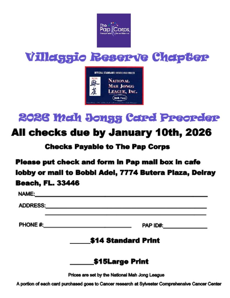 To signup and pay via credit card for any of the great offerings and events advertised in the below flyers, just click on the flyer and you will automatically be taken to the Villaggio Reserve page on the national Pap Corps website.