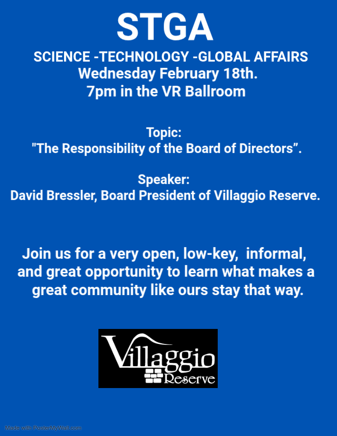 Any VR resident with a background in science, technology, political science, and foreign affairs or an avocational interest in these areas is encouraged to join and participate in our meetings.