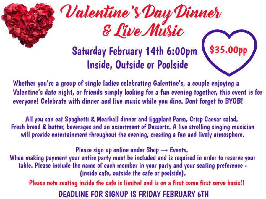 RESERVATIONS ARE REQUIRED FOR DINNERS. Reservations may be made ahead of time, either in person at the cafe or over the phone by calling 561-495-4114 OPTION 4. All reservations must be made during regular Cafe hours.
