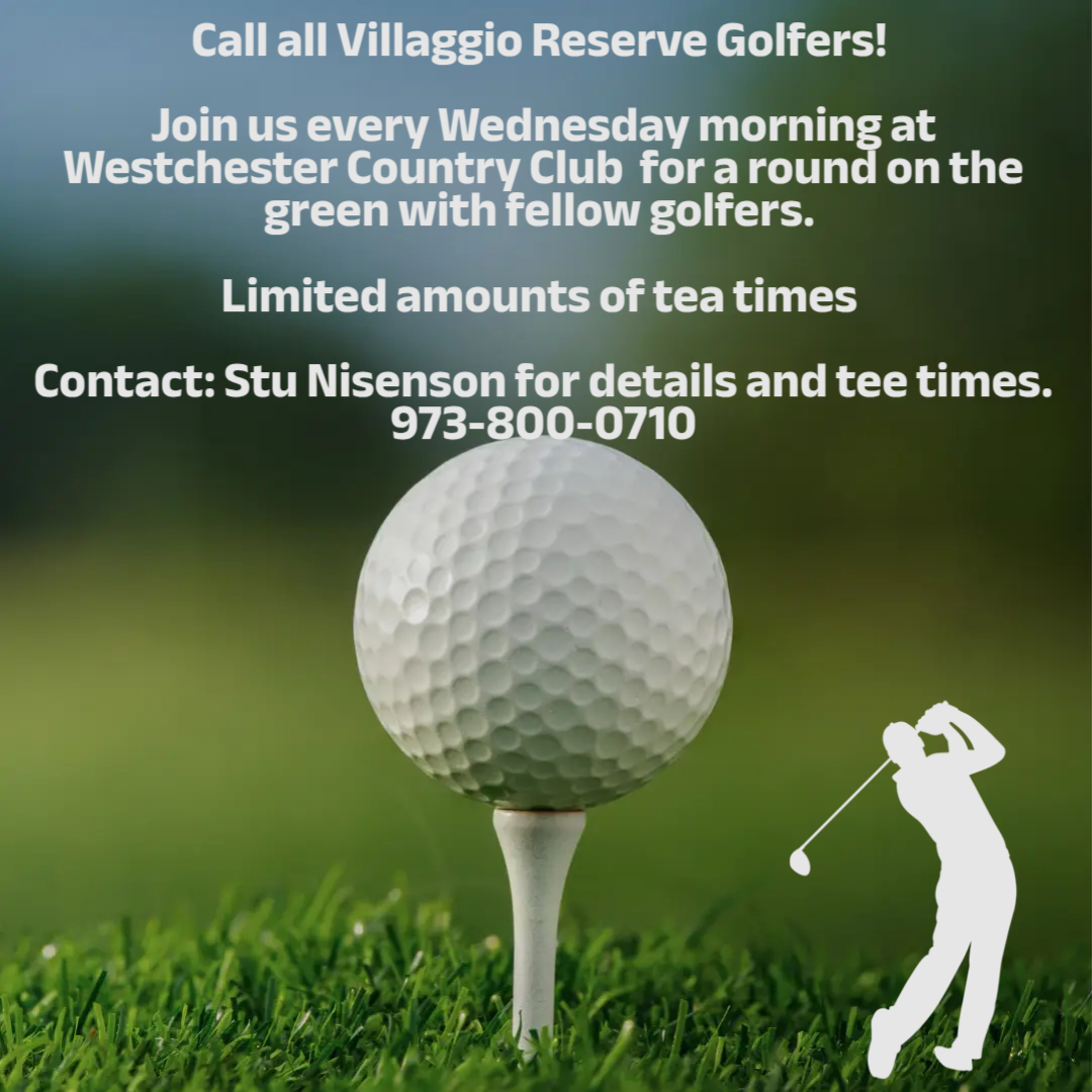 Golf Stuart Nisenson Stapleton_Nisenson@yahoo.com Wednesday, Westchester Country Club, Boynton Beach @ 9:00 AM. The golf is open to both men and women. Anyone interested in playing should contact Stuart Nisenson by email.